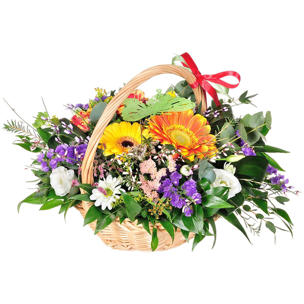 Цветы в корзинке «Радуга» с гарантией качества, цены и быстрой доставки!